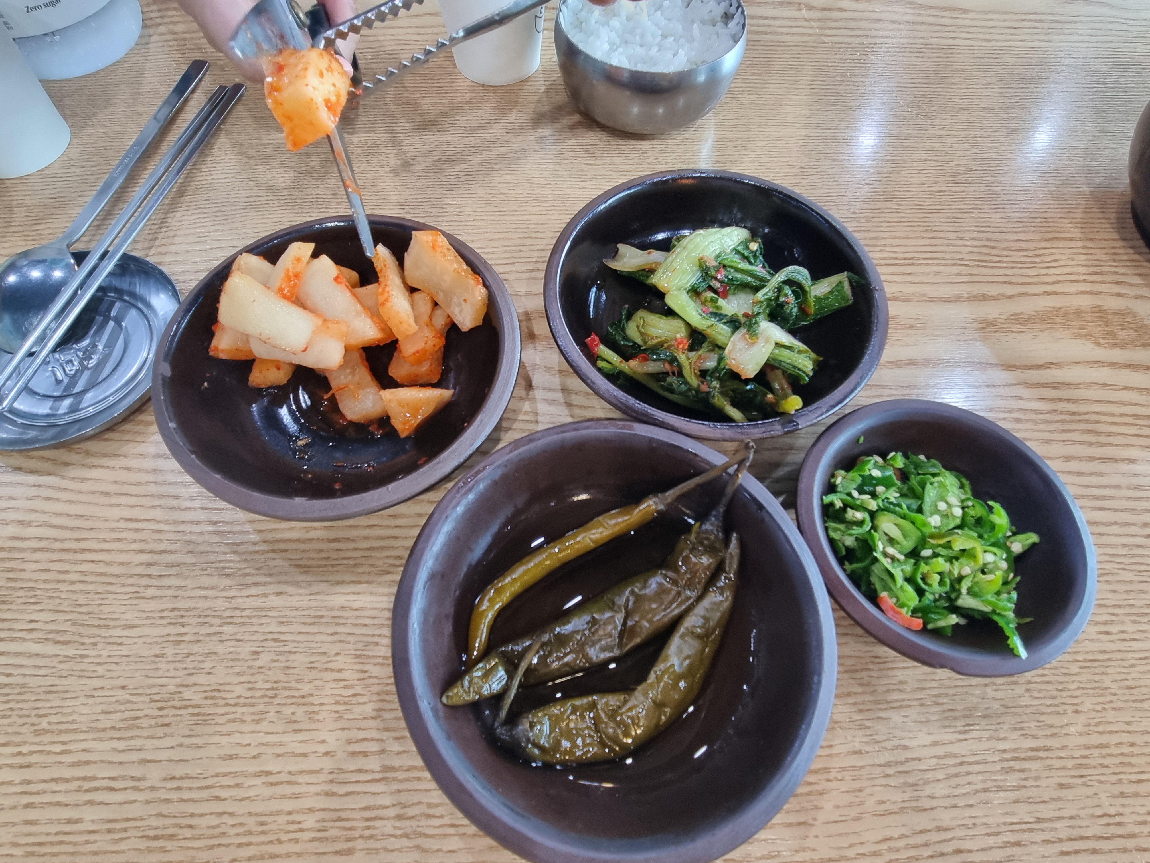 테이블에는 기본 반찬으로 섞박지열무김치가 있습니다.