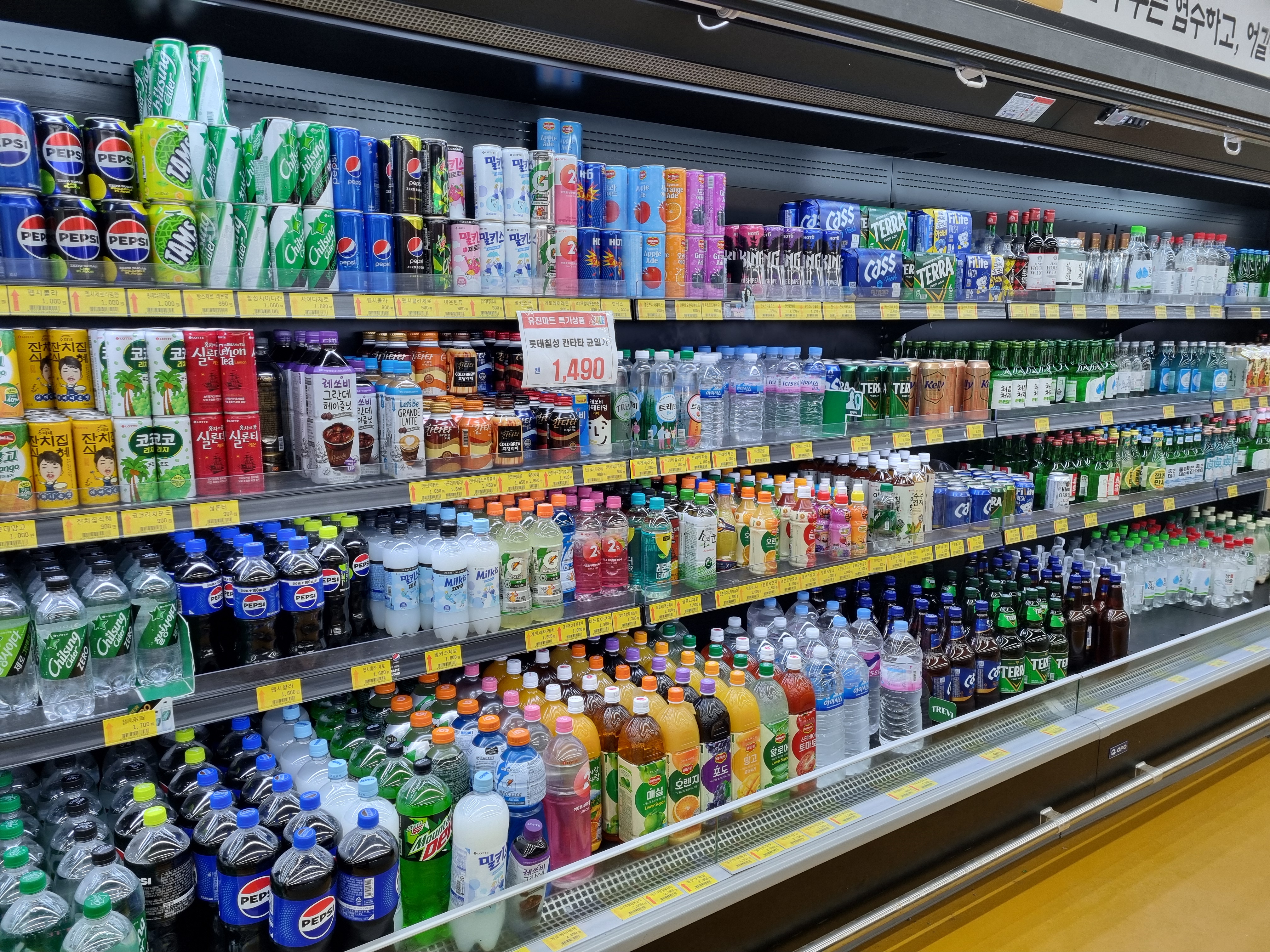 음료수와 주류도 판매하고 있어 한 곳에서 장보기를 끝낼 수 있습니다.
