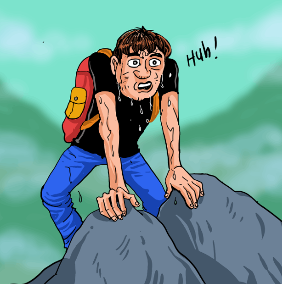 그는 충분한 물을 마시며 적절히 쉬어가며 등산을 하고 있었지만,